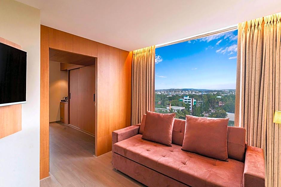 This spacious suite consists of 1 living room, 1 separate bedroom and 1 bathroom with a shower and free toiletries. The air-conditioned suite provides a flat-screen TV with satellite channels, a mini-bar, a tea and coffee maker, a wardrobe as well as a quiet street view. The unit offers 2 beds.